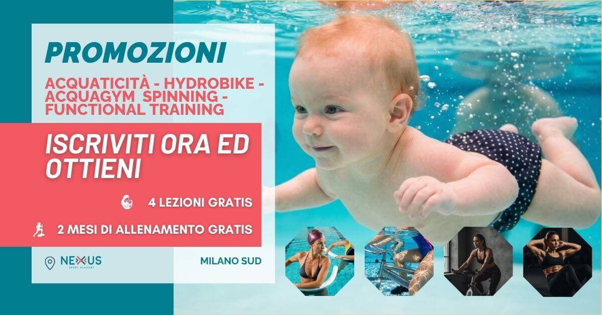 • 4 lezioni di Acquaticità gratuite per i più piccoli, per un primo approccio all’acqua in totale sicurezza